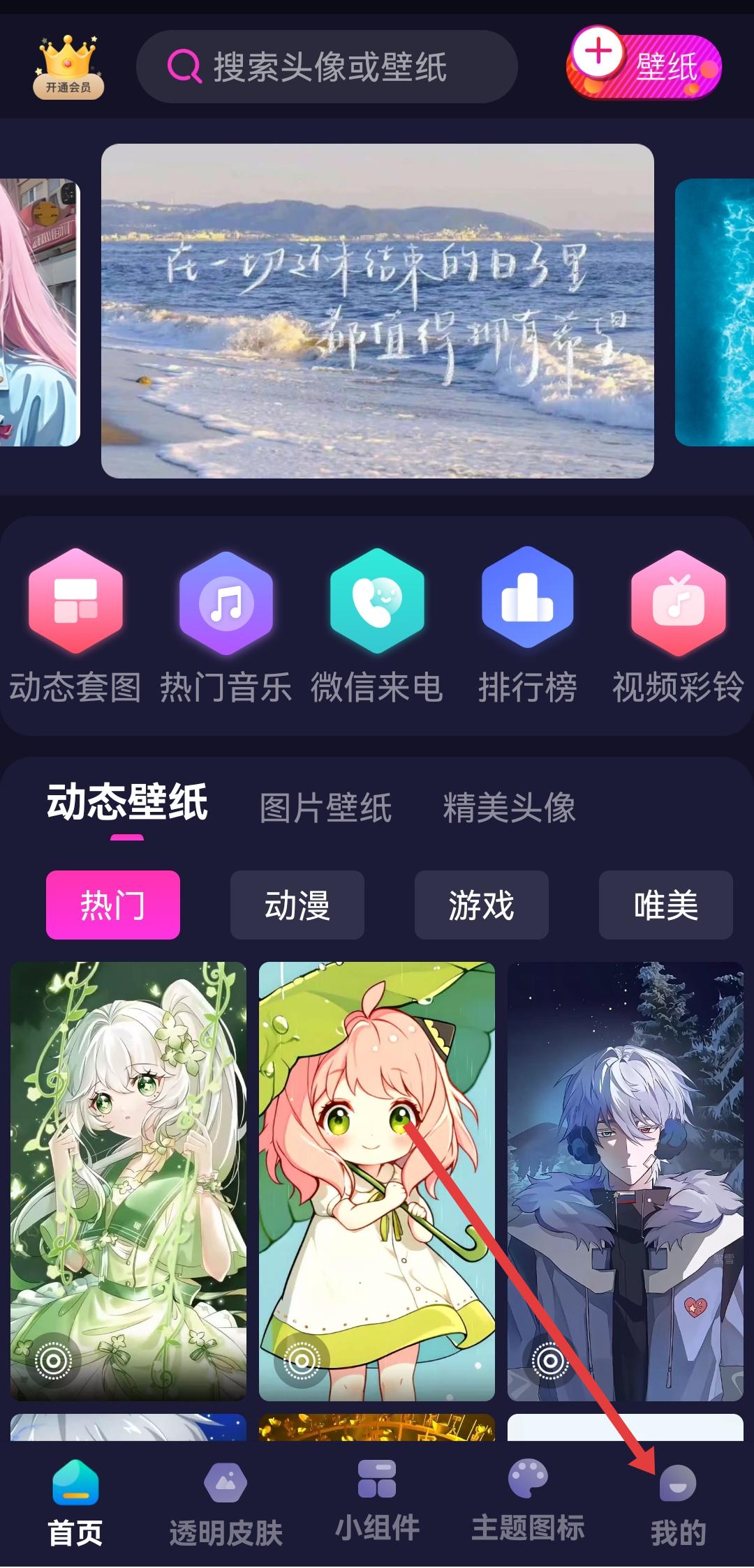 1、打开主题动态壁纸APP,点击底部导航栏最右侧的我的,进入个人中心页面。