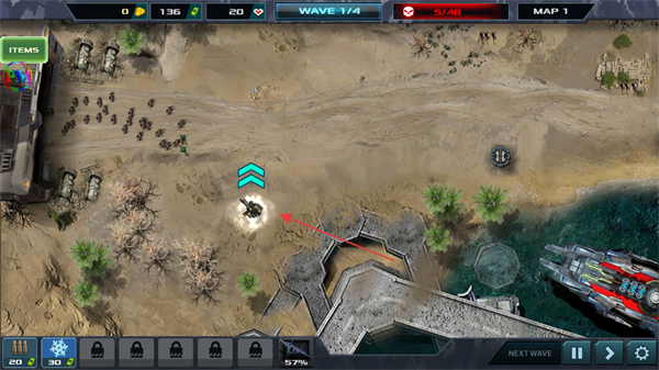 4、升级防御塔如MINIGUN,提升其火力和攻速,增强防御能力,应对后续波次敌人。