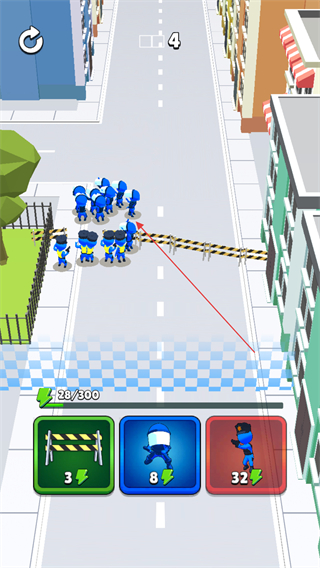3、操控蓝色队伍与红色敌人战斗,消耗敌方数量,同时补充己方单位。
