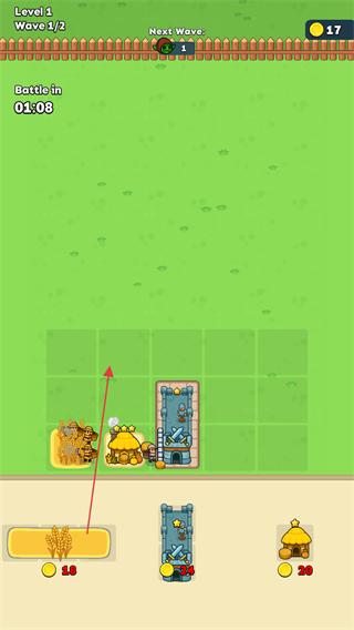 2、花费金币建造防御建筑如城堡,同时种植小麦获取资源。