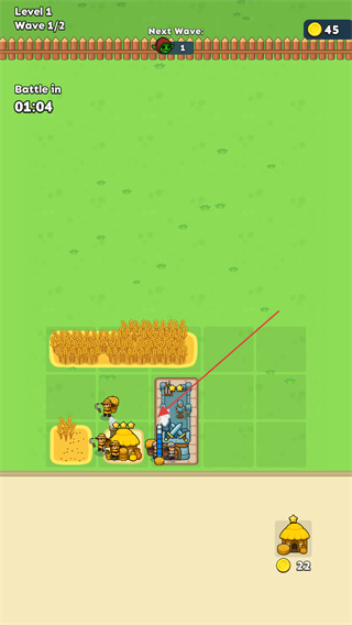 种田与征战是一款融合农场经营与塔防对抗的像素风格作品,以网格式地图为核心场景,需在网格中规划农场布局,放置不同形状的田地、房屋及功能性建筑,通过收割成熟农作物售卖获取金币与资源,实现农场扩张,同时作为塔防,需用积累的资源组建防御工事、布置陷阱,抵御一波波敌人的进攻。