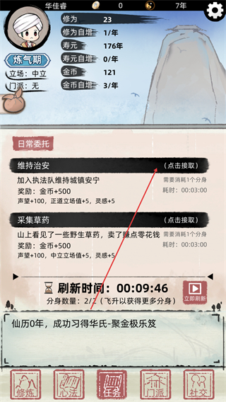 2、在日常委托界面点击点击接取任务,消耗分身执行以获取奖励。