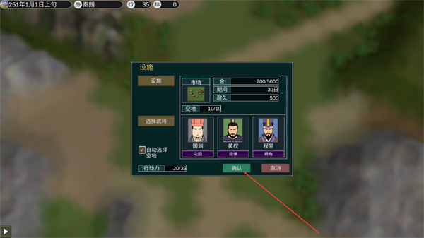 2、选择开发类型,挑选武将后点击确认,启动领地开发任务。