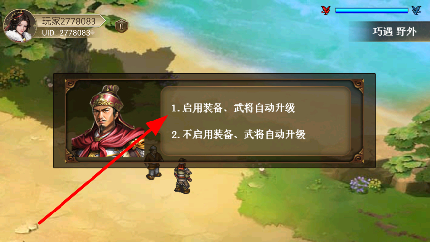 1、在游戏中,会遇到装备、武将自动升级的选择,可根据需求选择启用或不启用,不同选择会影响装备与武将的升级进程,需谨慎抉择。