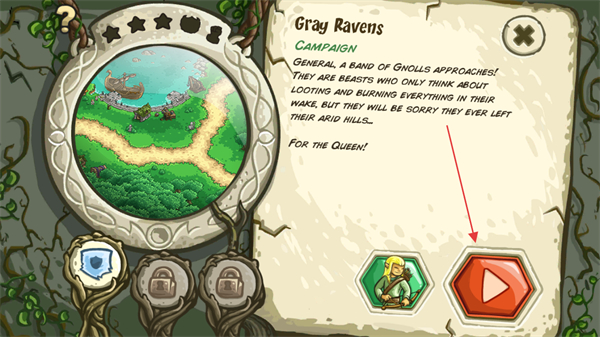 1、点击红色开始按钮,进入GrayRavens战役关卡。
