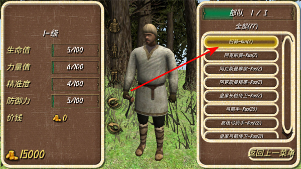 4、在部队招募界面,选择枪兵等兵种进行招募,这是组建军队的关键步骤,需根据战斗需求选择兵种,打造强力作战部队。