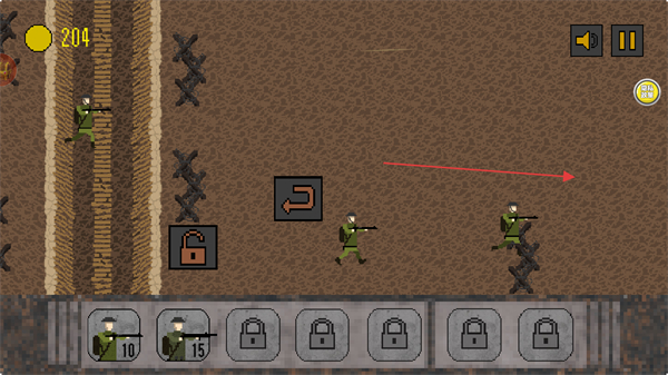 以闯关战斗为主要玩法,每通过一关可积累金币,金币用于解锁更强力的士兵,形成“闯关—积累—解锁”的循环,驱动持续参与。