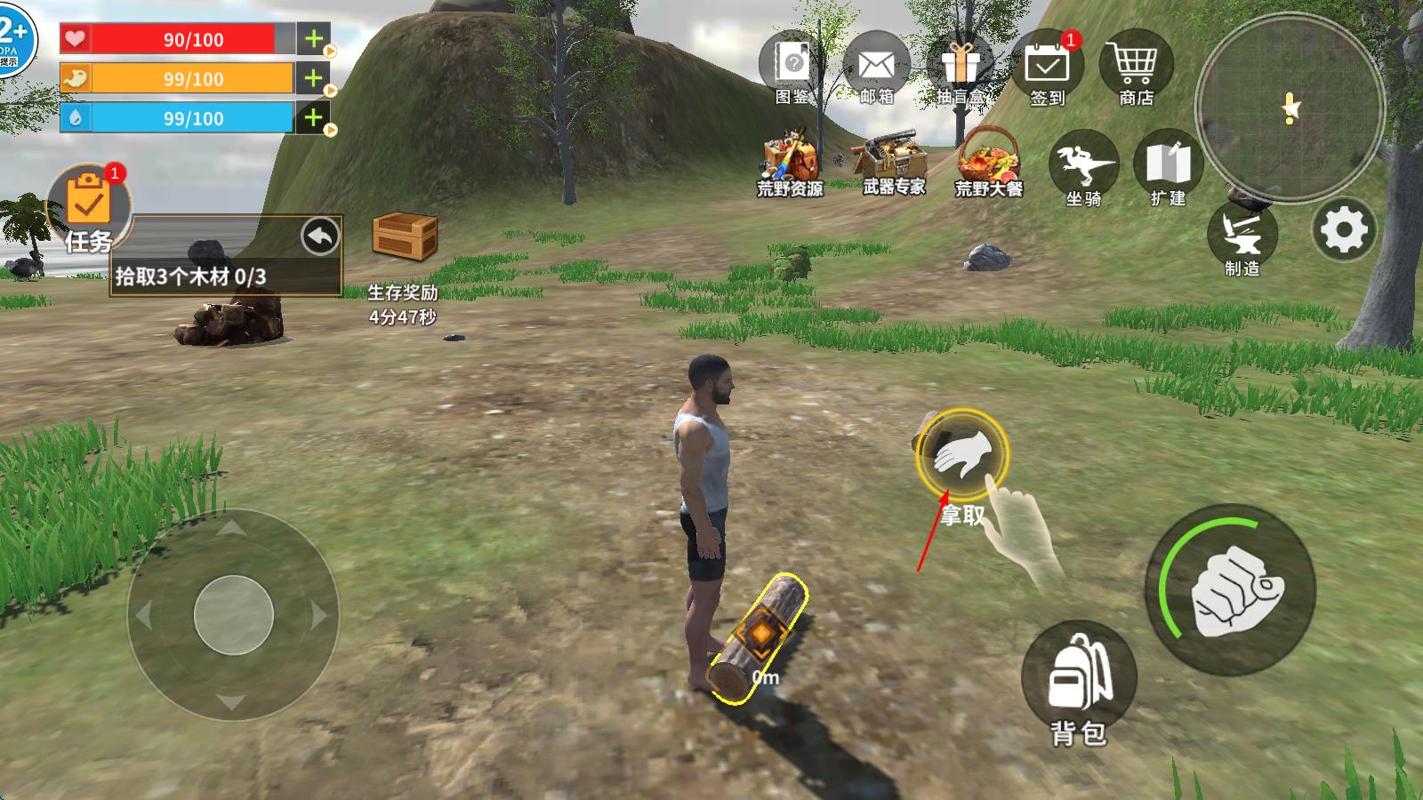 2、制作武器和搭建基地,驯服地图内的野兽。