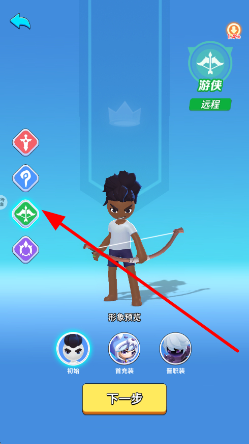 1、开局职业选择界面,有多种职业可供挑选,选好心仪职业后,还能预览角色形象,确定后点击下一步,为开启冒险做好准备。