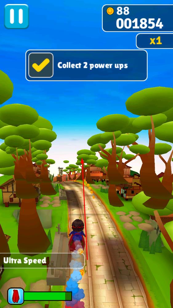 2、奔跑过程中,留意前方出现的敌人,在合适时机点击屏幕发射飞镖将其打倒,同时灵活应对突然出现的特殊障碍物,保持奔跑节奏不中断。