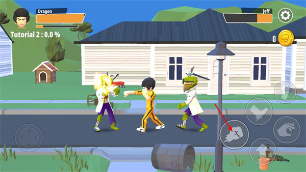 3、遇到敌人时点击右侧拳头图标,发动拳击攻击敌人,利用攻击技能击败对手。