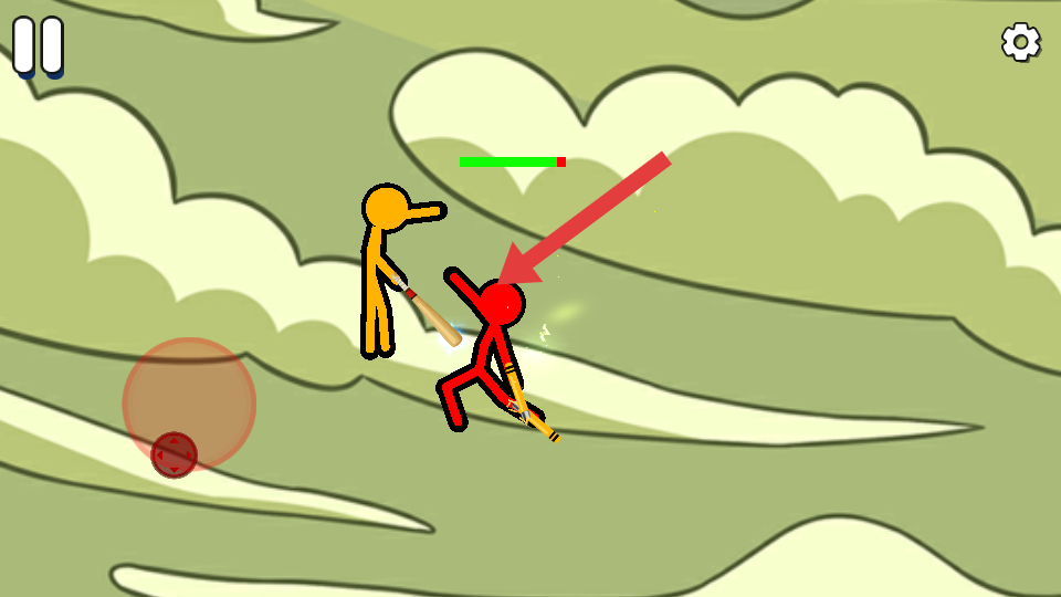 2、当与持武器的红色火柴人敌人交战时,抓住时机对箭头指向的敌人发起攻击,干扰攻击节奏,争取战斗优势。