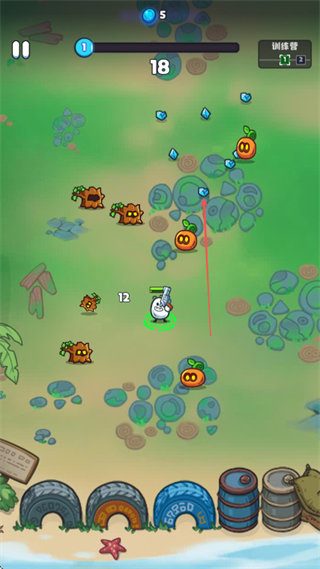 1、操控茶叶蛋角色攻击橙色、棕色怪物,收集蓝色宝石,提升关卡进度。