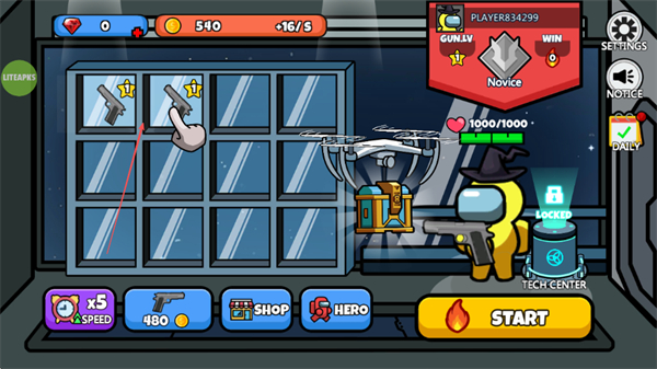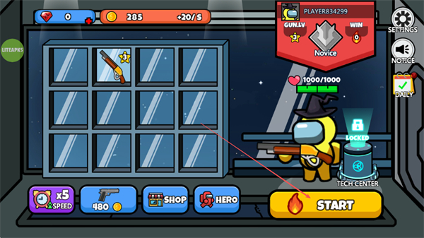 2、选择解锁的枪械装备后,点击START进入游戏,开始太空大逃杀。