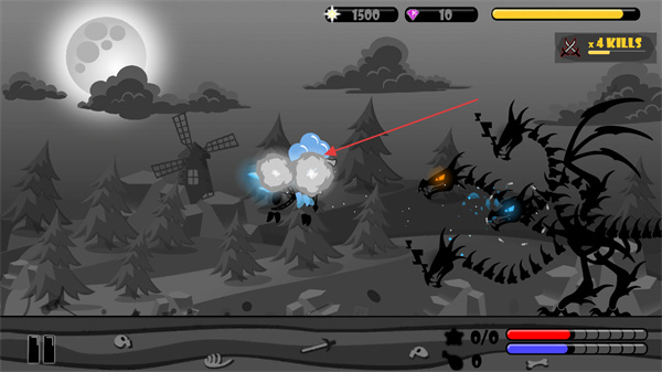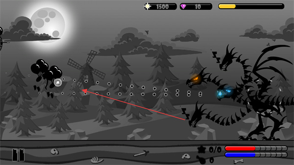 1、操控恶龙瞄准飞行敌人,发射攻击,阻止其靠近。