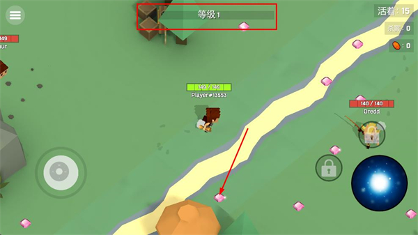 3、进入到游戏内,拾取地上的宝石,即可提升角色等级。
