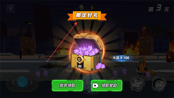 4、战斗胜利后,领取限定好礼中的水晶奖励,用于机甲升级,提升战力。