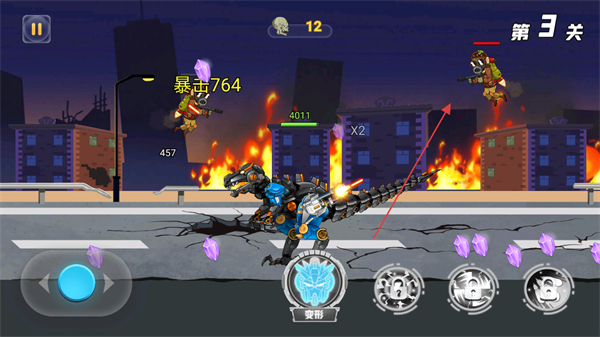 3、应对飞行僵尸的空中攻击,灵活移动机甲,发起反击,打出暴击伤害消灭它们。