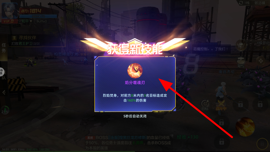 3、冒险过程中,可获取新技能,焰分噬魂刃,该技能能让烈焰焚身,对前方3米内的5名目标造成攻击160%的伤害,助力战斗。