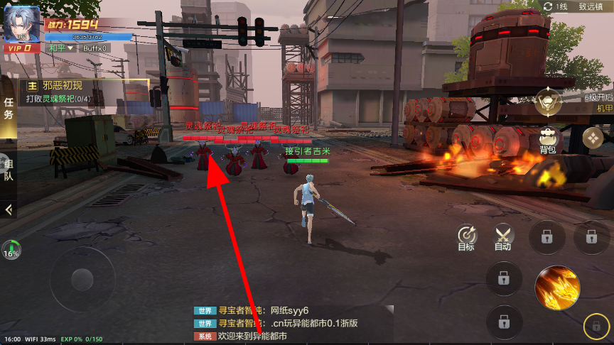 2、进入游戏后,会有主线任务指引,邪恶初现等任务,跟随任务提示,与敌人灵魂祭祀等战斗,推进主线任务进程,提升角色实力。