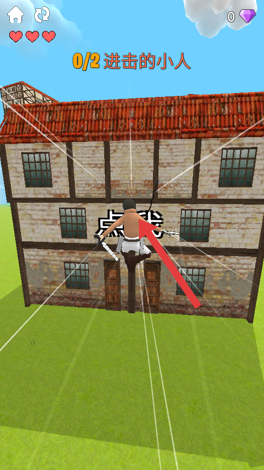 2、进入关卡后,点击角色可控制其行动,开始追击进击的小人,这是完成关卡任务的基础操作,通过追击可积累资源进度。