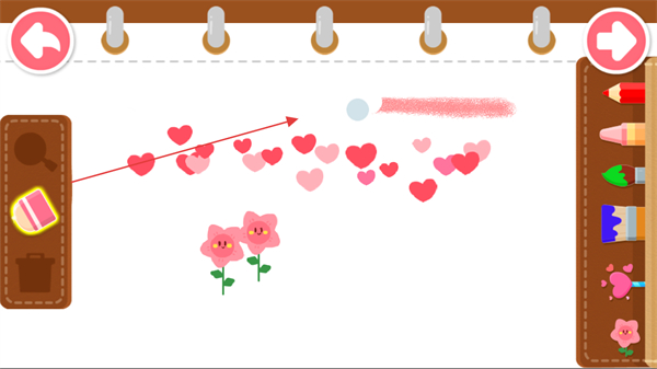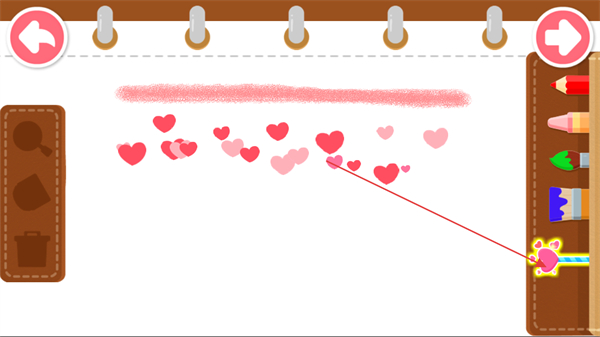 3、切换爱心画笔,在画纸上绘制爱心图案,丰富绘画内容。