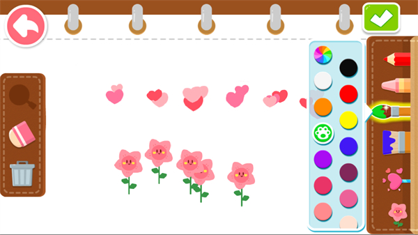 所有图案和界面元素都采用圆润可爱的卡通风格,色彩鲜艳柔和不刺眼,符合儿童的视觉喜好,能持续吸引孩子主动参与绘画活动。