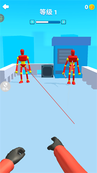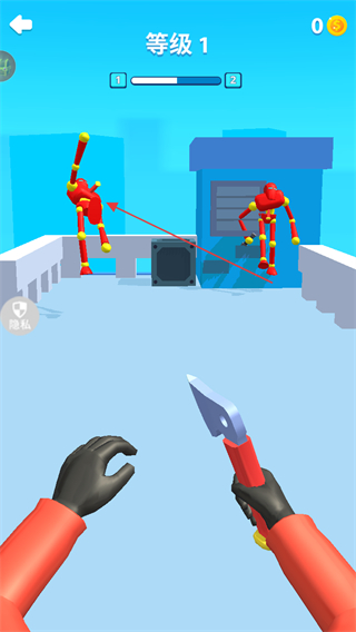 1、瞄准红色机器人投掷飞刀,精准攻击可提升伤害。