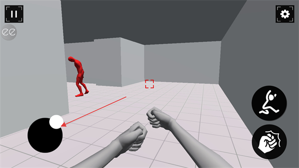 1、通过左侧摇杆操控角色移动,靠近红色敌人,准备战斗。