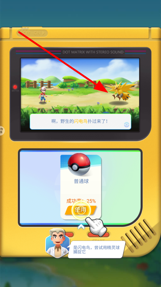 3、捕捉精灵时,若遇到野生精灵,如野生闪电鸟,可选择合适的精灵球,像普通球,点击使用,尝试捕捉精灵,开启与精灵的羁绊。