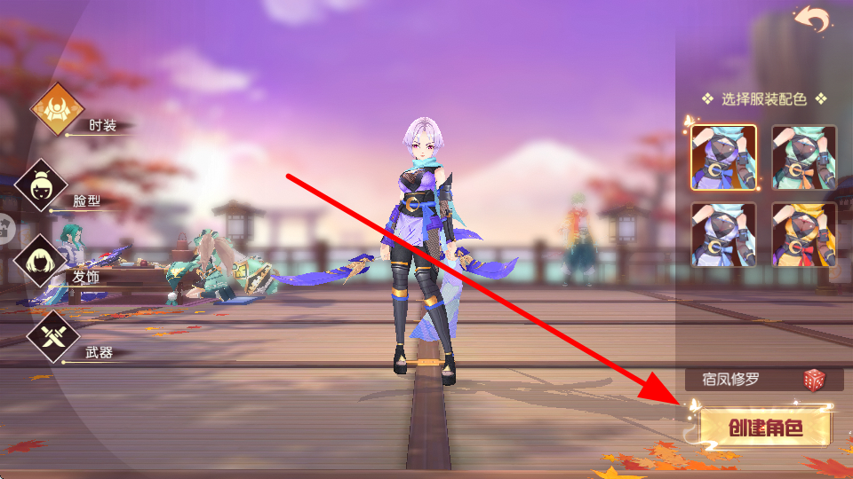 1、职业角色创建时,选择时装、脸型、发饰、武器等,打造心仪的角色形象,设置好后点击创建。