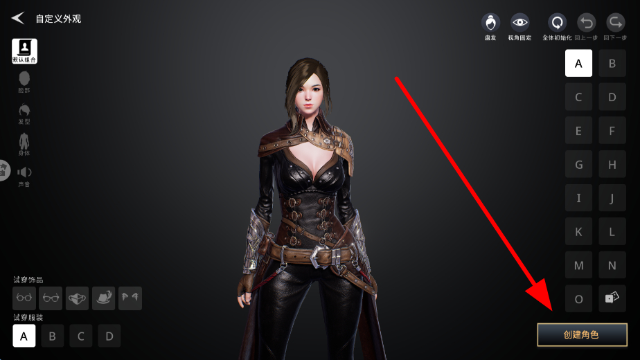 2、接着进入自定义外观环节,能对角色的脸部、发型、身体等多方面进行调整,打造出符合自己喜好的角色形象,调整完毕后点击创建角色,完成角色创建。