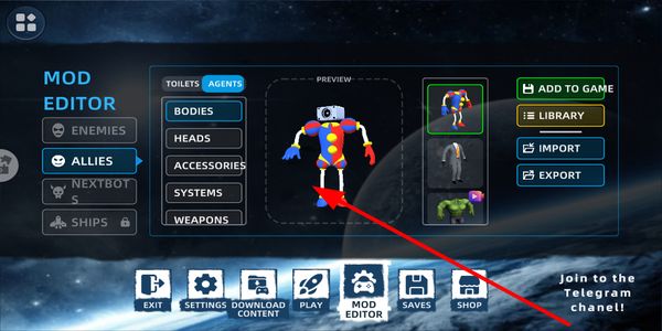 3、在MOD编辑器中选择盟友分类,搭配不同部件自定义角色形象,完成后添加到游戏中使用。
