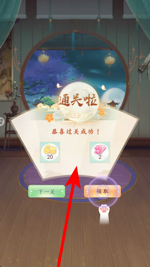 3、通关成功后,会显示通关啦,并可领取金币、钻石等奖励,领取后还能选择进入下一关,继续体验后续的换装关卡,不断推进游戏进程。