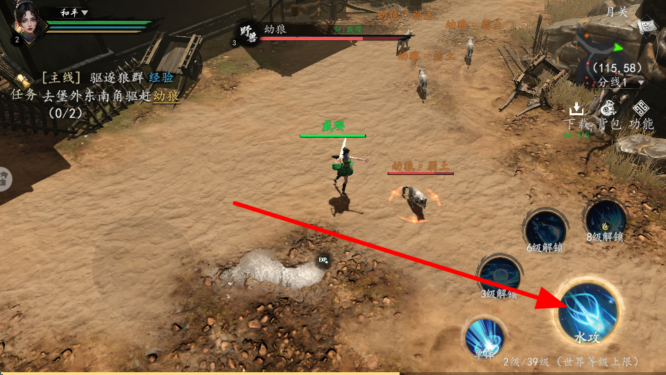 4、在战斗中点击相应技能图标,如水攻,对敌人释放技能,造成伤害,高效应对敌人,完成战斗任务。