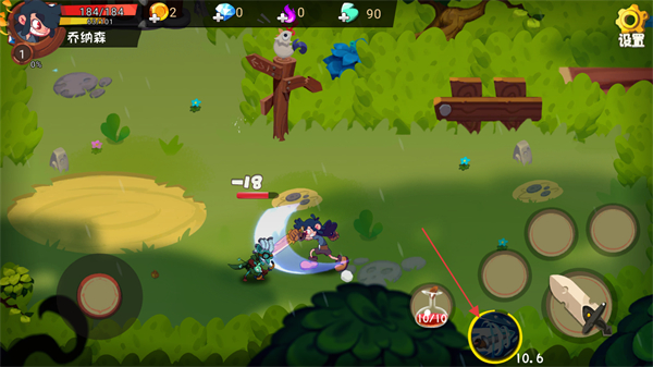 2、进入游戏场景后,通过左下角虚拟摇杆操控角色移动,靠近敌人。