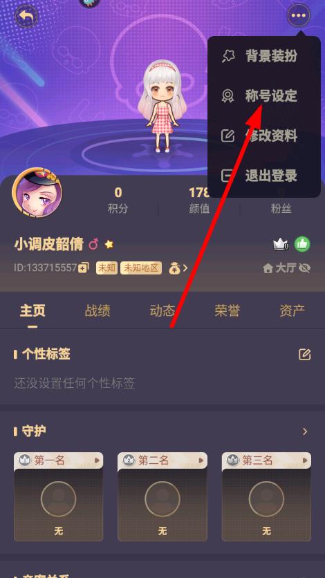 3、在弹出菜单中,点击称号设定选项,进入称号选择界面。
