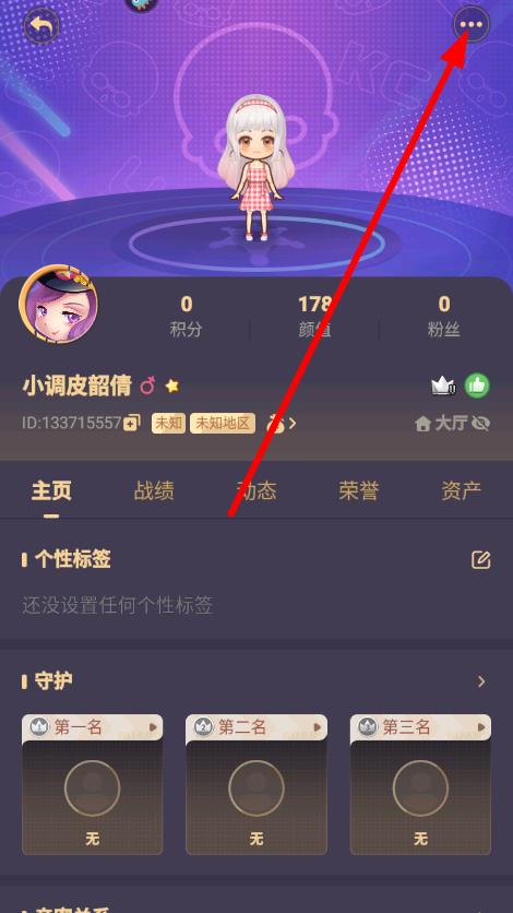 2、在个人信息页面,点击右上角三个点图标,弹出操作菜单。