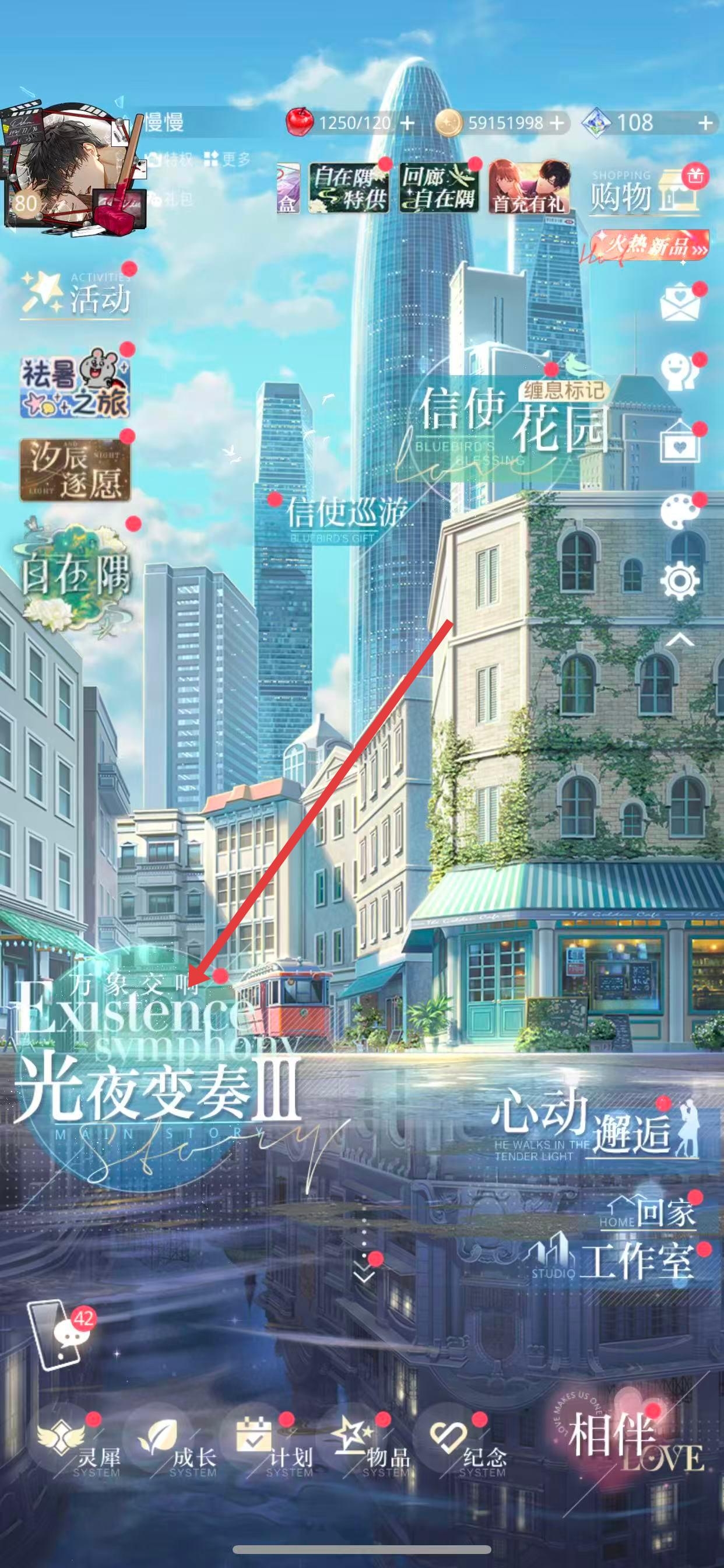 1、进入游戏主界面,点击光夜变奏Ⅲ区域,进入章节剧情选择页面。