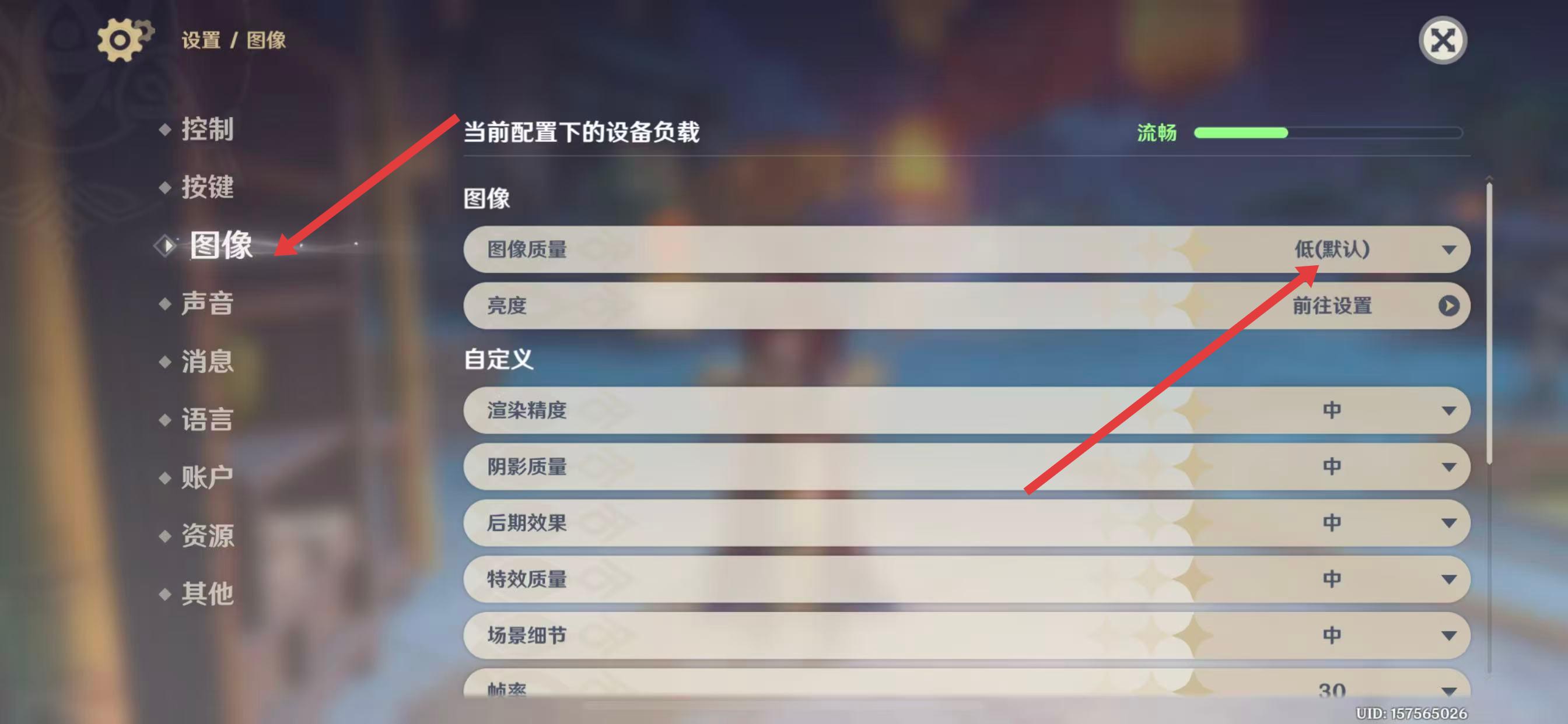 4、可以将渲染精度、阴影质量、后期效果、特效质量、场景细节等图像相关设置适当调整。