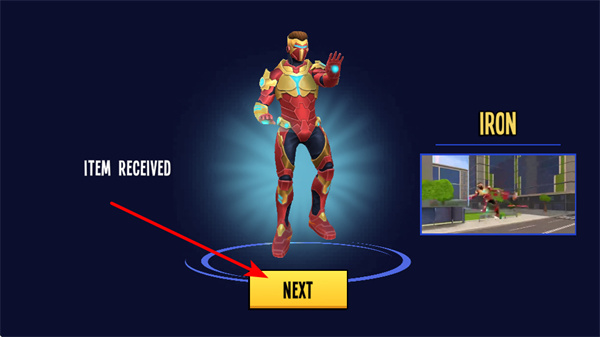4、获取新英雄后,点击NEXT按钮,这是推进游戏流程的关键操作,准确点击可继续探索新英雄的玩法与后续内容。