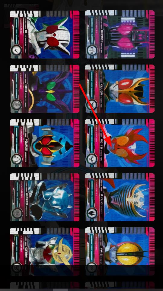 1、在腰带界面中,点击带有骑士形象的卡片区域,插入对应骑士卡片,变身使用骑士能力的操作。