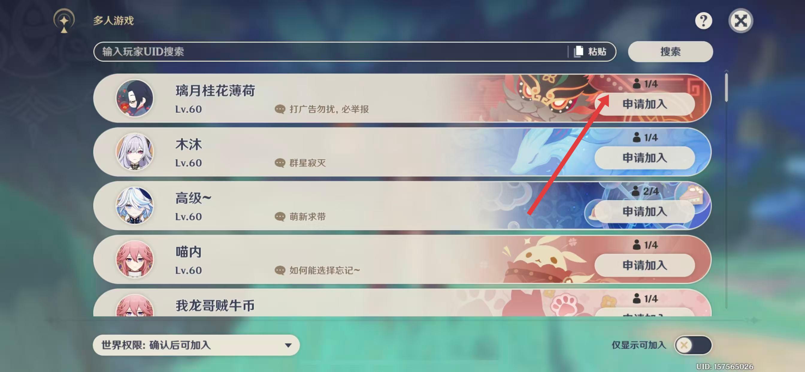 3、点击其名字右侧的申请加入,等待好友通过你的申请,即可成功加入好友的世界。