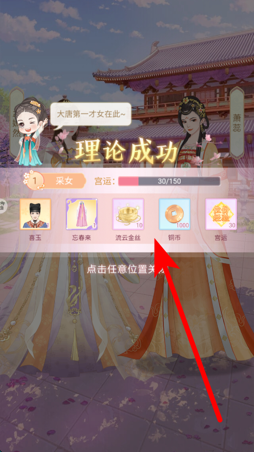 4、上前理论时,若成功,会显示理论成功,并获得喜玉、忘春来、流云金丝、铜币等奖励,可用于角色养成,提升角色在宫廷中的实力与地位,助力宫廷历程。