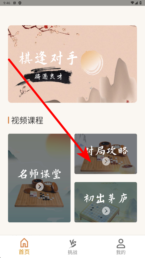 1、进入找到课程区域,其中对局攻略板块有丰富教学资源,点击进入可学习五子棋对战技巧,了解不同局势下的应对策略,帮你快速提升棋艺基础。