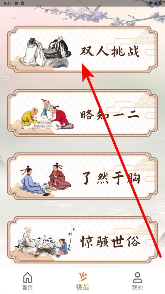 3、切换至挑战,选择双人挑战模式,邀请好友一同对战,在实时对弈中运用所学技巧,相互切磋,增添五子棋对战乐趣,还能快速提升实战水平。