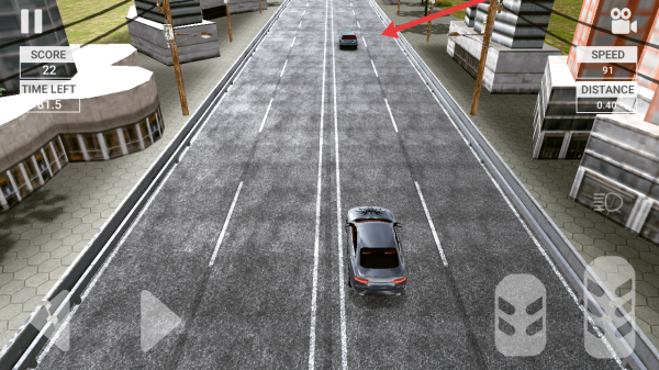 2、在游戏中需要操控车辆躲避前方的车辆,维持高速的行驶,积累分数与距离,延长限时续航。