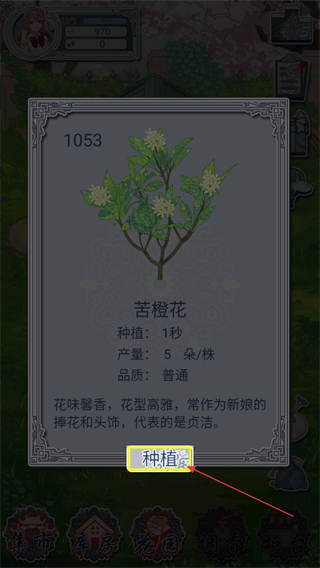 3、在种子列表中选中已购买的种子,点击种植按钮,等待种子的种植时长结束。