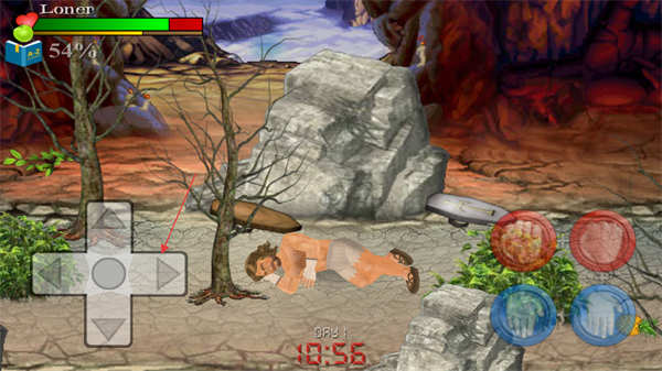 4、遭遇敌对目标时,使用右侧的红色攻击按钮进行对抗,减少自身状态损耗,保障海岛生存安全。