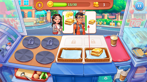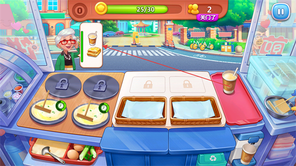 1、在摊位界面准备食材,等待顾客下单,推进关卡进度。